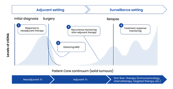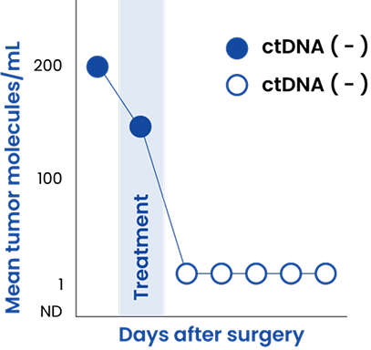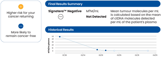 SignateraTM detects the increase or decrease of ctDNA each time it is ordered as part of your routine follow-up blood tests.